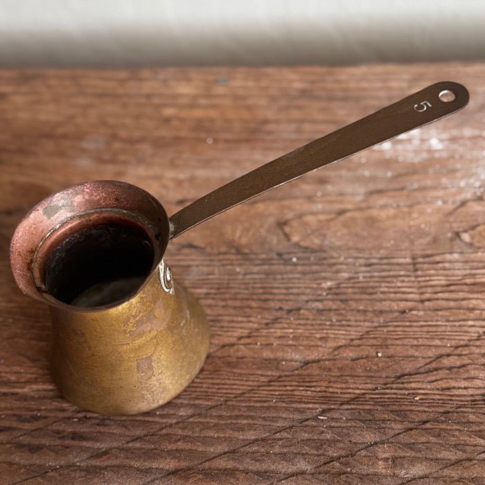 This solid copper and brass measuring pitcher can be used for matches, a plant or other uses. 5.5 " W x 3.75 "H