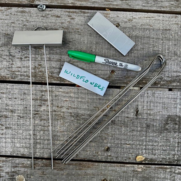 Set of 30 - 10" x 3.5" Stainless Metal Markers. Stainless has a place in the garden, and along with being visually appealing, will last forever and the weather only makes it look better as it ages with its beautiful aged patina. This set includes 30 stainless garden row markers. Just write on them with permanent marker, and remove with rubbing alcohol when you want to reuse them. They can be used for the following: